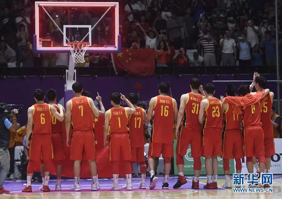 在第18屆亞運會男子籃球決賽中,中國隊以84比72戰(zhàn)勝伊朗隊,奪得冠軍。 新華社記者 黃宗治 攝