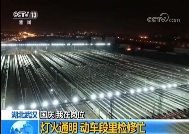 武漢動(dòng)車段是全國規(guī)模較大的高速列車檢修基地之一,重點(diǎn)承擔(dān)中南地區(qū)的動(dòng)車組檢修任務(wù)。國慶期間,每天晚上,有將近100趟動(dòng)車組回到這里進(jìn)行檢修養(yǎng)護(hù),整齊排列的高鐵動(dòng)車,萬箭待發(fā),就如同“陸地航母”一樣,非常壯觀。