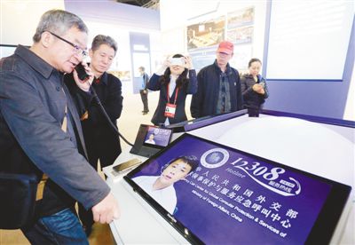 2017年10月27日,市民在北京展覽館體驗(yàn)外交部全球領(lǐng)事保護(hù)與服務(wù)應(yīng)急呼叫中心12308熱線。人民視覺(jué)