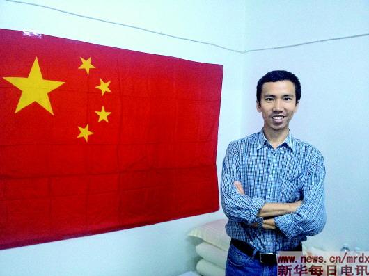 在我心的最高處,掛有一面國旗2015年3月空襲時(shí),劉萬利在中國駐也門使館地下室與國旗合影。劉萬利(國際部)