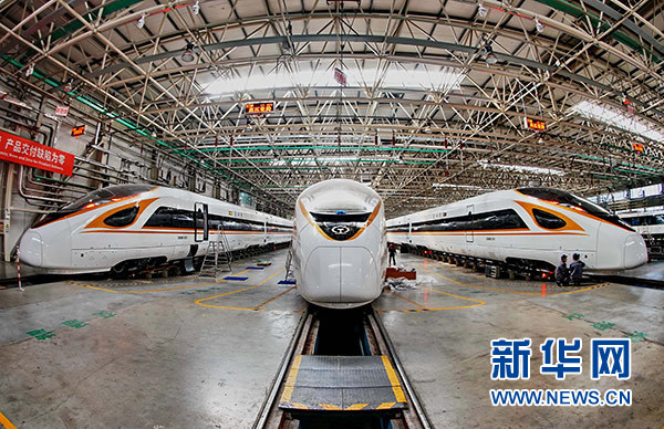 走進(jìn)中車四方股份公司交車線,一列列嶄新的高速動(dòng)車組如同巨龍般整齊排列,蓄勢(shì)待發(fā)。這里跑出了中國(guó)高鐵的多個(gè)第一——