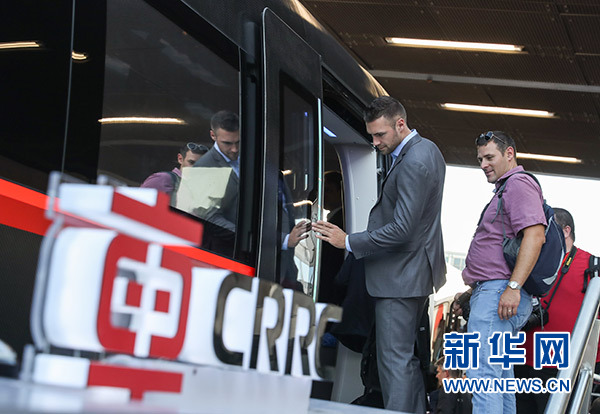 在德國(guó)首都柏林,人們參觀中國(guó)中車的新一代碳纖維地鐵列車(2018年9月18日攝)。新華社記者 單宇琦 攝