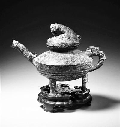 這件青銅“虎鎣”為西周晚期文物,頂蓋內(nèi)鑄有“自作供鎣”銘文,因其精美獨(dú)特的造型、罕見的虎形裝飾而具有重要的歷史、藝術(shù)和文化價(jià)值。相關(guān)資料顯示,青銅“虎鎣”原為清宮皇室舊藏,1860年被英國軍官哈利·埃文斯從圓明園劫掠獲得,此后一直由其家族收藏。