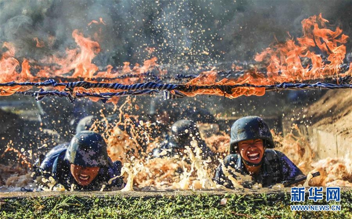 海軍陸戰(zhàn)隊(duì)某旅偵察營(yíng)在三亞某訓(xùn)練場(chǎng)開(kāi)展極限體能訓(xùn)練(11月21日攝)。新華社發(fā)(范旭東 攝)