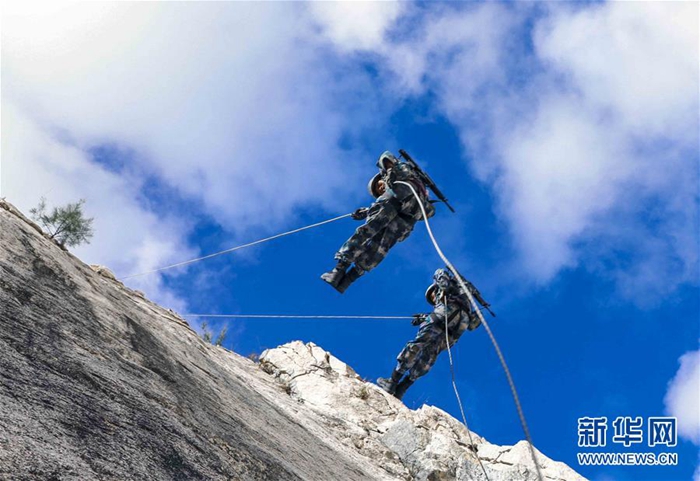 海軍陸戰(zhàn)隊(duì)某旅偵察營(yíng)在三亞某地進(jìn)行崖壁滑降訓(xùn)練(11月20日攝)。新華社發(fā)(范旭東 攝)