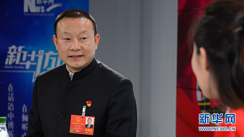 3月7日,全國人大代表、河南省信陽市文新茶葉有限責(zé)任公司董事長劉文新(左)做客新華網(wǎng)2018全國兩會(huì)特別訪談。新華網(wǎng) 楊濛攝