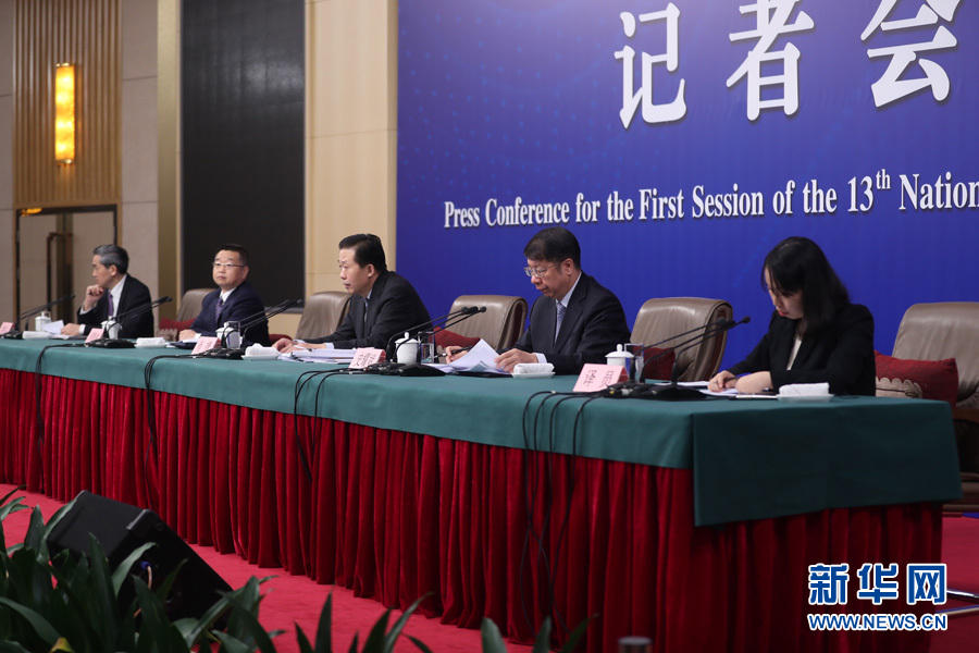 十三屆全國人大一次會議新聞中心于3月7日上午在梅地亞中心多功能廳舉行記者會,邀請財(cái)政部部長肖捷,副部長史耀斌、胡靜林就“財(cái)稅改革和財(cái)政工作”相關(guān)問題回答中外記者提問。圖為記者會現(xiàn)場。新華網(wǎng)/中國政府網(wǎng)?翟子赫 攝