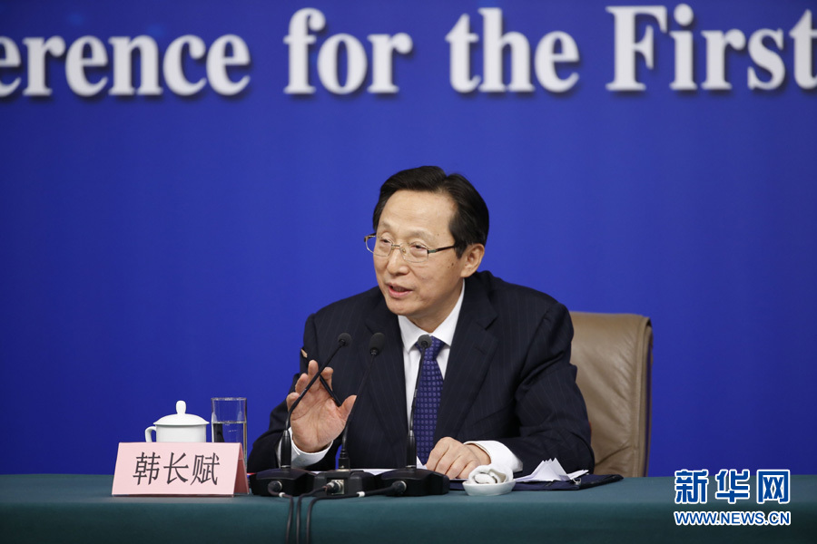 十三屆全國人大一次會議新聞中心于3月7日在梅地亞中心多功能廳舉行記者會,邀請農(nóng)業(yè)部部長韓長賦,農(nóng)業(yè)部新聞發(fā)言人、辦公廳主任潘顯政就“實(shí)施鄉(xiāng)村振興戰(zhàn)略 推動農(nóng)業(yè)轉(zhuǎn)型升級”的相關(guān)問題回答中外記者的提問。圖為韓長賦回答記者提問。新華網(wǎng)/中國政府網(wǎng)翟子赫攝