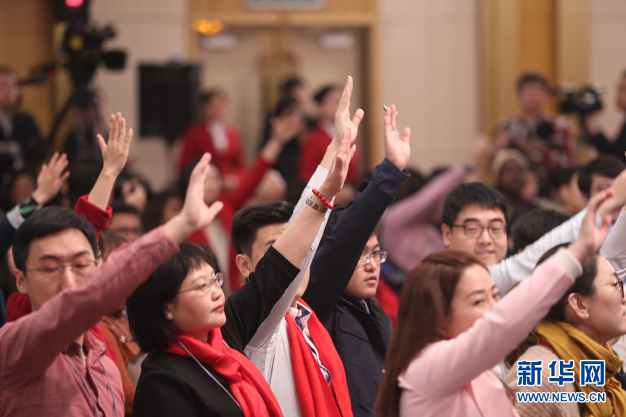 十三屆全國(guó)人大一次會(huì)議新聞中心于3月7日在梅地亞中心多功能廳舉行記者會(huì),邀請(qǐng)農(nóng)業(yè)部部長(zhǎng)韓長(zhǎng)賦,農(nóng)業(yè)部新聞發(fā)言人、辦公廳主任潘顯政就“實(shí)施鄉(xiāng)村振興戰(zhàn)略 推動(dòng)農(nóng)業(yè)轉(zhuǎn)型升級(jí)”的相關(guān)問題回答中外記者的提問。圖為現(xiàn)場(chǎng)記者舉手提問。新華網(wǎng)/中國(guó)政府網(wǎng) 陳杰 攝