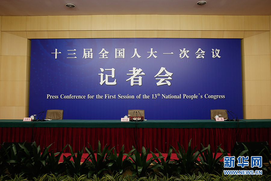 十三屆全國人大一次會議新聞中心于3月7日在梅地亞中心多功能廳舉行記者會,邀請扶貧辦主任劉永富就“打好精準(zhǔn)脫貧攻堅戰(zhàn)”的相關(guān)問題回答中外記者的提問。圖為記者會現(xiàn)場。新華網(wǎng)/中國政府網(wǎng) 陳杰 攝