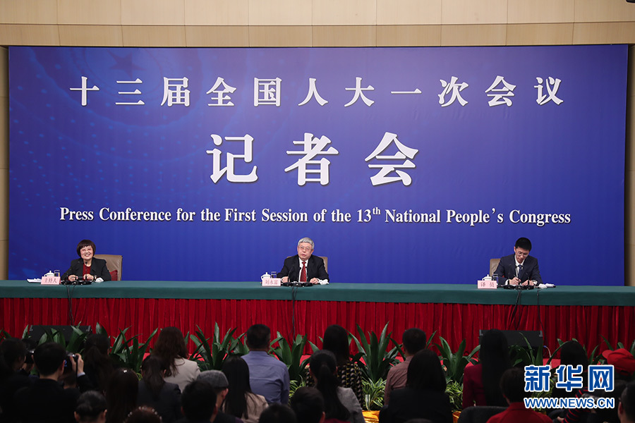 十三屆全國人大一次會議新聞中心于3月7日在梅地亞中心多功能廳舉行記者會,邀請國務(wù)院扶貧辦主任劉永富就“打好精準(zhǔn)脫貧攻堅(jiān)戰(zhàn)”的相關(guān)問題回答中外記者的提問。圖為記者會現(xiàn)場。新華網(wǎng)/中國政府網(wǎng) 陳杰 攝