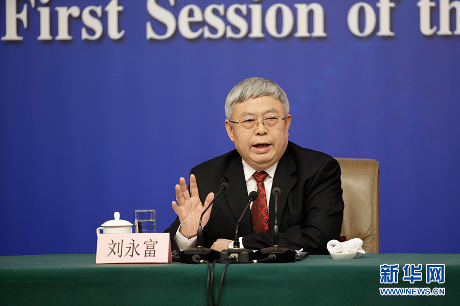十三屆全國人大一次會議新聞中心于3月7日在梅地亞中心多功能廳舉行記者會,邀請國務院扶貧辦主任劉永富就“打好精準脫貧攻堅戰(zhàn)”的相關問題回答中外記者的提問。圖為劉永富回答記者提問。新華網/中國政府網 陳杰 攝