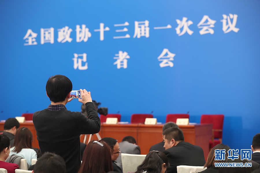 全國政協(xié)十三屆一次會議3月8日15:00在人民大會堂新聞發(fā)布廳舉行第二場記者會,邀請中央財(cái)經(jīng)領(lǐng)導(dǎo)小組辦公室副主任楊偉民,中國進(jìn)出口銀行董事長、黨委書記胡曉煉,農(nóng)業(yè)部原副部長陳曉華,全國工商聯(lián)副主席、清華大學(xué)經(jīng)濟(jì)管理學(xué)院院長錢穎一,中國中化集團(tuán)有限公司黨組書記、董事長寧高寧就推動經(jīng)濟(jì)高質(zhì)量發(fā)展回答記者提問。圖為記者在現(xiàn)場拍攝。新華網(wǎng)/中國政府網(wǎng) 翟子赫 攝?