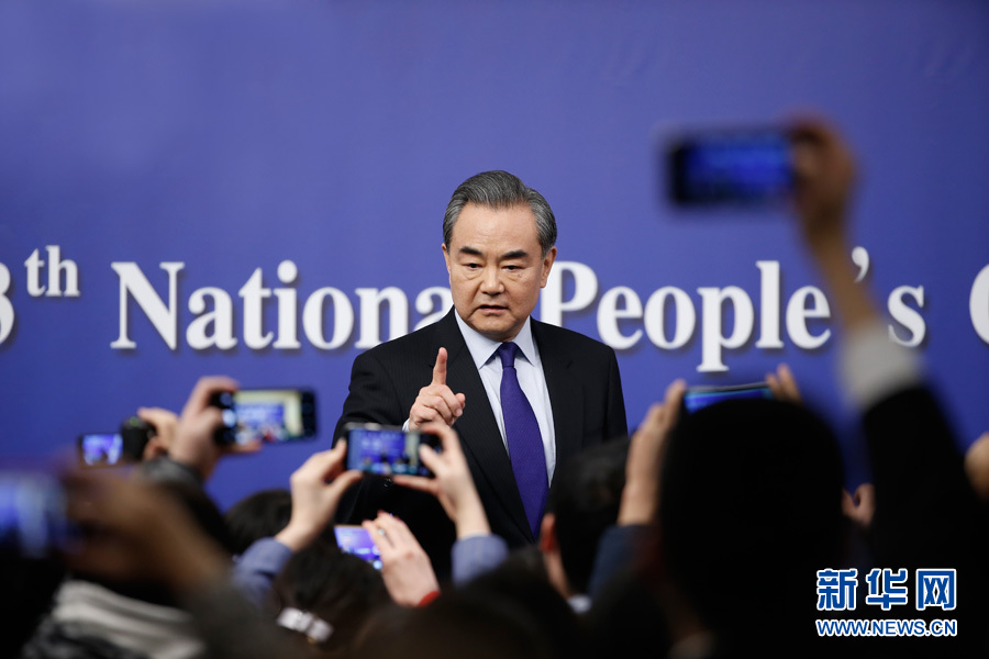 十三屆全國人大一次會議新聞中心3月8日上午10時在梅地亞中心多功能廳舉行記者會,邀請外交部部長王毅就“中國外交政策和對外關系”回答中外記者提問。圖為王毅與現場記者互動。 新華網/中國政府網 陳杰 攝
