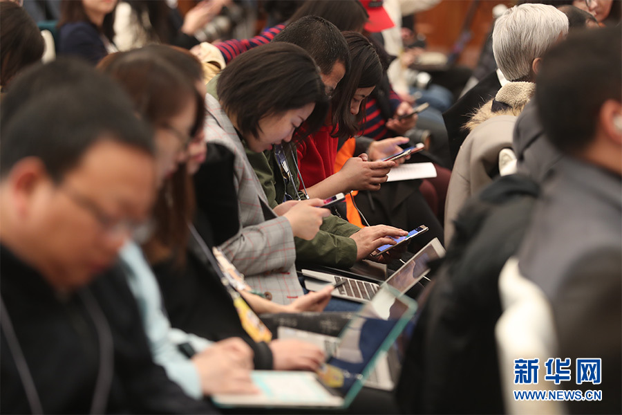 全國(guó)政協(xié)十三屆一次會(huì)議3月8日15:00在人民大會(huì)堂新聞發(fā)布廳舉行第二場(chǎng)記者會(huì),邀請(qǐng)中央財(cái)經(jīng)領(lǐng)導(dǎo)小組辦公室副主任楊偉民,中國(guó)進(jìn)出口銀行董事長(zhǎng)、黨委書記胡曉煉,農(nóng)業(yè)部原副部長(zhǎng)陳曉華,全國(guó)工商聯(lián)副主席、清華大學(xué)經(jīng)濟(jì)管理學(xué)院院長(zhǎng)錢穎一,中國(guó)中化集團(tuán)有限公司黨組書記、董事長(zhǎng)寧高寧就推動(dòng)經(jīng)濟(jì)高質(zhì)量發(fā)展回答記者提問(wèn)。圖為媒體記者在現(xiàn)場(chǎng)。新華網(wǎng)/中國(guó)政府網(wǎng)?翟子赫 攝