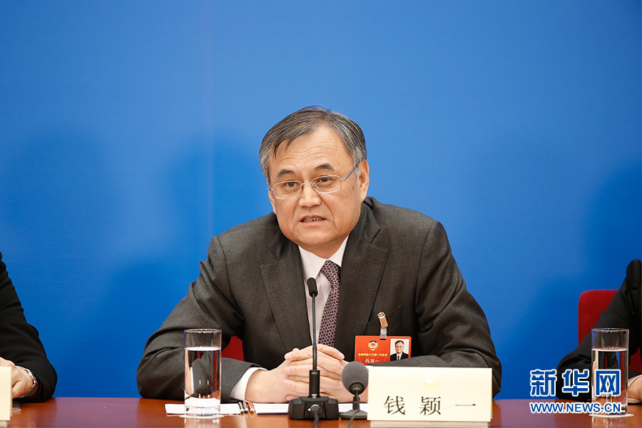 全國政協(xié)十三屆一次會議3月8日15:00在人民大會堂新聞發(fā)布廳舉行第二場記者會,邀請中央財經(jīng)領(lǐng)導(dǎo)小組辦公室副主任楊偉民,中國進出口銀行董事長、黨委書記胡曉煉,農(nóng)業(yè)部原副部長陳曉華,全國工商聯(lián)副主席、清華大學(xué)經(jīng)濟管理學(xué)院院長錢穎一,中國中化集團有限公司黨組書記、董事長寧高寧就推動經(jīng)濟高質(zhì)量發(fā)展回答記者提問。圖為全國工商聯(lián)副主席、清華大學(xué)經(jīng)濟管理學(xué)院院長錢穎一。新華網(wǎng)/中國政府網(wǎng)?陳杰 攝