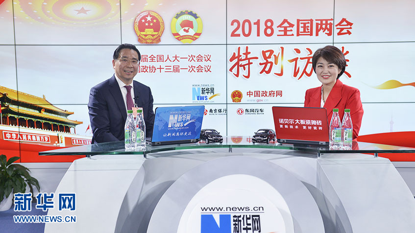 圖為全國人大代表,中國移動浙江公司黨委書記、董事長、總經理鄭杰做客新華網2018全國兩會特別訪談。新華網 李相博攝