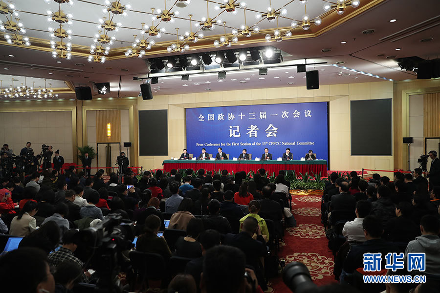 3月10日8時45分,全國政協十三屆一次會議將在梅地亞中心多功能廳舉行記者會,邀請5位全國政協委員就“提高保障和改善民生水平”回答記者提問。圖為記者會現場。新華網/中國政府網?翟子赫 攝