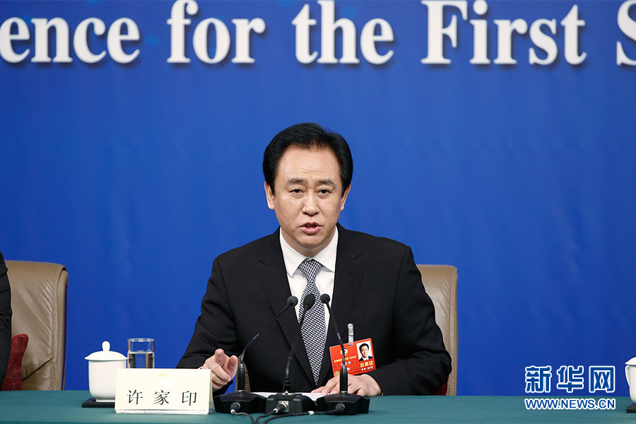 3月10日8時(shí)45分,全國(guó)政協(xié)十三屆一次會(huì)議在梅地亞中心多功能廳舉行記者會(huì),邀請(qǐng)5位全國(guó)政協(xié)委員就“提高保障和改善民生水平”回答記者提問(wèn)。圖為許家印回答記者提問(wèn)。新華網(wǎng)/中國(guó)政府網(wǎng) 翟子赫 攝