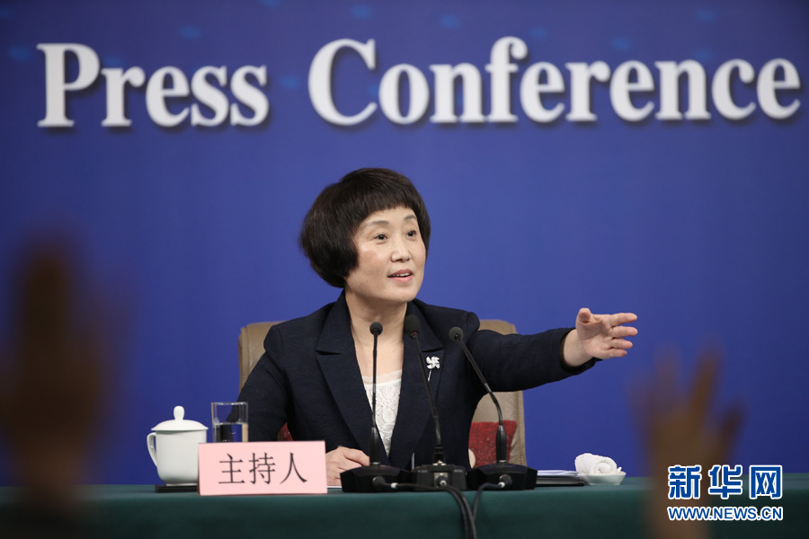十三屆全國人大一次會議新聞中心3月10日15時在梅地亞中心多功能廳舉行記者會,邀請國務院國資委主任肖亞慶,副秘書長、新聞發(fā)言人彭華崗就“國有企業(yè)改革發(fā)展”相關問題回答中外記者提問。圖為記者會主持人。新華網(wǎng)/中國政府網(wǎng) 翟子赫 攝
