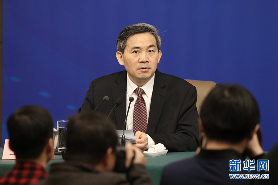 十三屆全國(guó)人大一次會(huì)議新聞中心3月11日10時(shí)在梅地亞中心多功能廳舉行記者會(huì),邀請(qǐng)商務(wù)部部長(zhǎng)鐘山、副部長(zhǎng)兼國(guó)際貿(mào)易談判副代表王受文、副部長(zhǎng)錢克明就“推動(dòng)形成全面開(kāi)放新格局 推動(dòng)商務(wù)事業(yè)高質(zhì)量發(fā)展”相關(guān)問(wèn)題回答中外記者提問(wèn)。圖為主持人何紹仁。新華網(wǎng)/中國(guó)政府網(wǎng) 陳杰 攝?