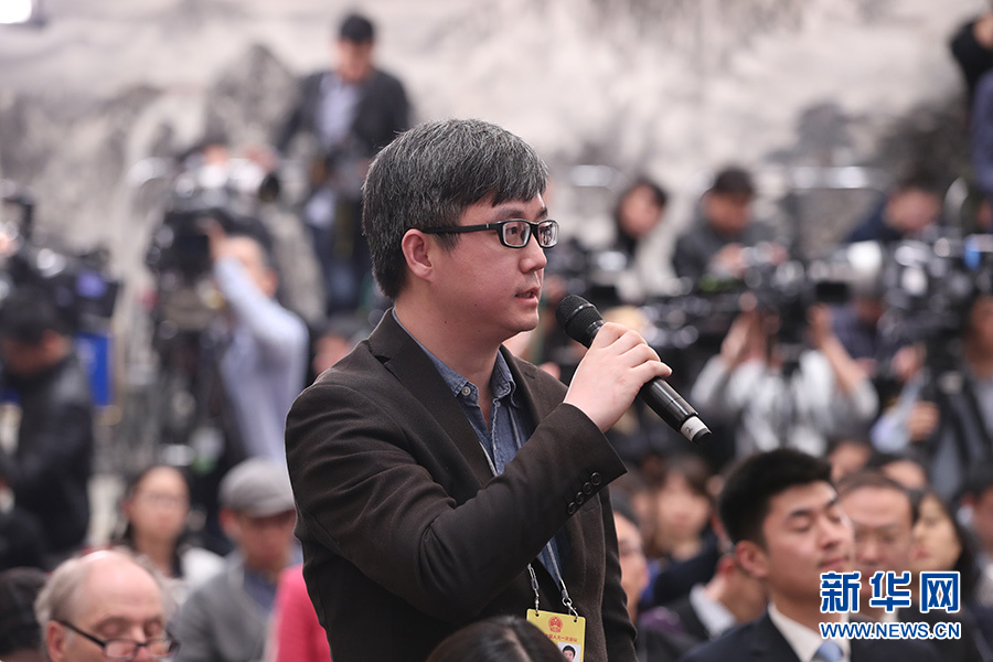 3月11日,十三屆全國人大一次會議新聞中心在人民大會堂一樓新聞發(fā)布廳舉行記者會,邀請十三屆全國人大一次會議秘書處法案組組長、全國人大常委會法工委主任沈春耀,法案組副組長、全國人大常委會法工委副主任鄭淑娜就“憲法修正案”相關(guān)問題回答中外記者提問。圖為中國國際廣播電臺記者提問。新華網(wǎng)/中國政府網(wǎng) 陳杰 攝