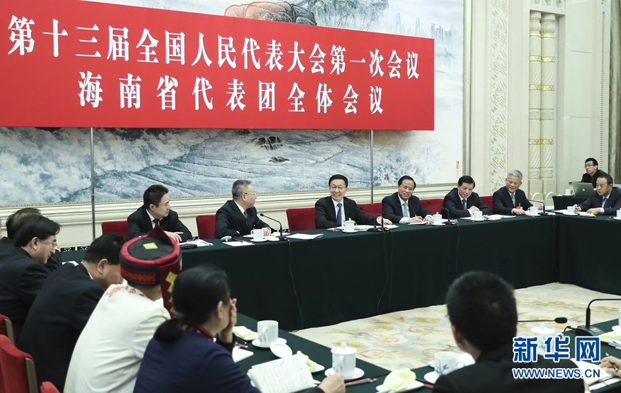 3月12日,中共中央政治局常委韓正參加十三屆全國(guó)人大一次會(huì)議海南代表團(tuán)的審議。