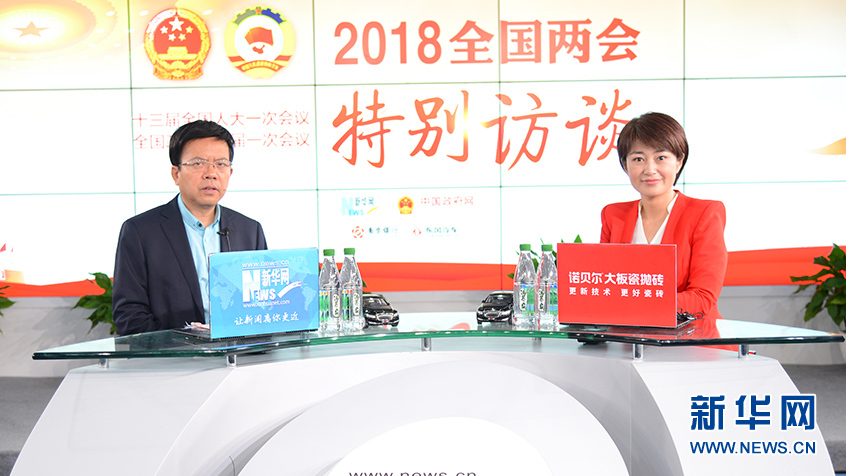 圖為全國政協(xié)委員,陜西建工集團有限公司黨委書記、董事長、總經(jīng)理張義光(左)做客新華網(wǎng)2018全國兩會特別訪談。新華網(wǎng) 楊濛攝