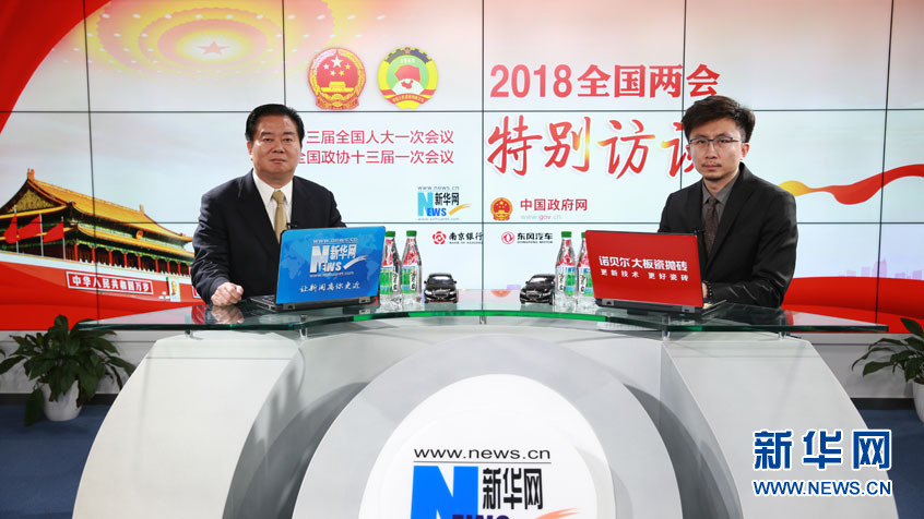 圖為全國人大代表、禹洲集團董事局主席林龍安做客新華網(wǎng)2018全國兩會特別訪談。新華網(wǎng) 楊锘攝