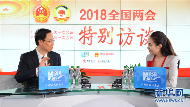 3月14日,全國人大代表、南京市市長藍紹敏(左)做客新華網(wǎng)2018全國兩會特別訪談。新華網(wǎng) 楊濛攝