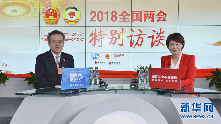 圖為15日,全國人大代表、酒泉市委書記吳仰東做客新華網2018全國兩會特別訪談。新華網 李相博攝