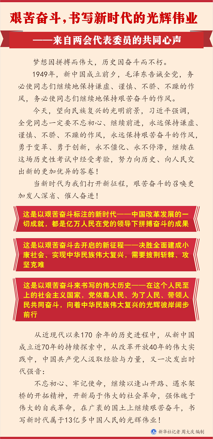 圖表:艱苦奮斗,書(shū)寫(xiě)新時(shí)代的光輝偉業(yè)——來(lái)自兩會(huì)代表委員的共同心聲 新華社記者 周大慶 編制