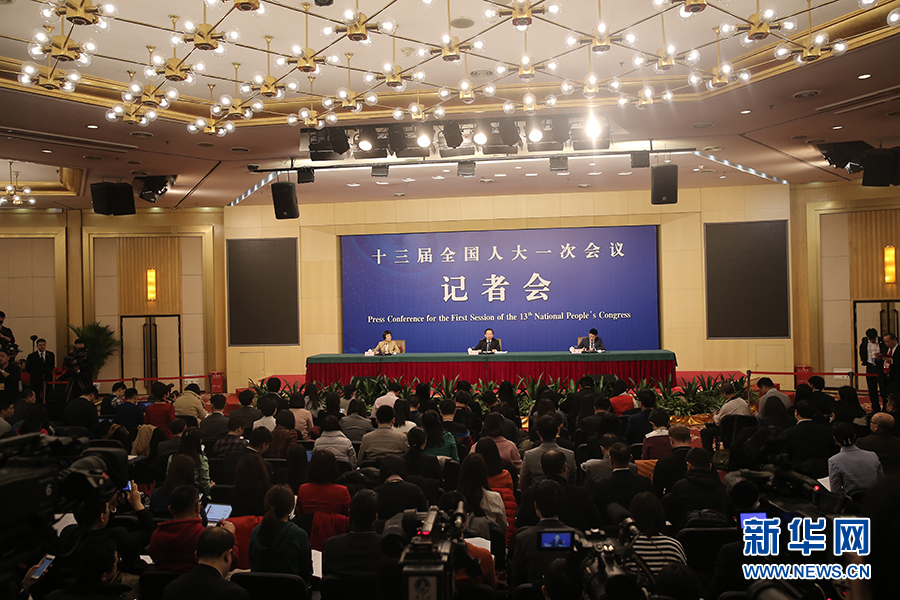 十三屆全國人大一次會議新聞中心于3月17日15時在梅地亞中心多功能廳舉行記者會,邀請環(huán)保部部長李干杰就“打好污染防治攻堅戰(zhàn)”相關(guān)問題回答中外記者提問。圖為記者會現(xiàn)場。新華網(wǎng)/中國政府網(wǎng) 陳杰 攝