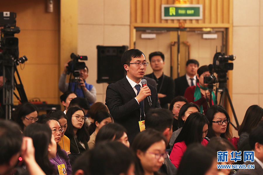 十三屆全國(guó)人大一次會(huì)議新聞中心3月17日(星期六)15時(shí)在梅地亞中心多功能廳舉行記者會(huì),邀請(qǐng)環(huán)保部部長(zhǎng)李干杰就“打好污染防治攻堅(jiān)戰(zhàn)”相關(guān)問(wèn)題回答中外記者提問(wèn)。圖為法制日?qǐng)?bào)記者提問(wèn)。新華網(wǎng)/中國(guó)政府網(wǎng) 曲植 攝