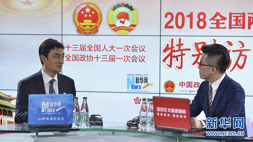 圖為18日,全國人大代表,云南省曲靖市委副書記、市長董保同做客新華網(wǎng)2018全國兩會特別訪談。新華網(wǎng) 李相博攝