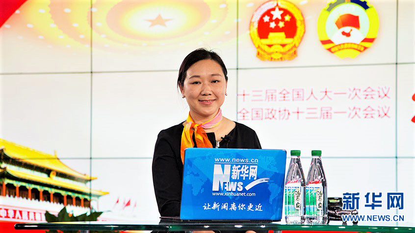 全國人大代表、作家、編劇蔣勝男做客新華網(wǎng)2018全國兩會特別訪談。新華網(wǎng) 馬江攝