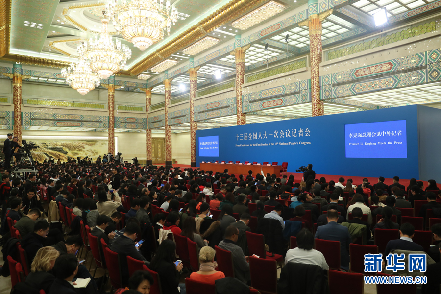 3月20日上午,十三屆全國(guó)人大一次會(huì)議閉幕后,國(guó)務(wù)院總理李克強(qiáng)在人民大會(huì)堂三樓金色大廳會(huì)見(jiàn)采訪十三屆全國(guó)人大一次會(huì)議的中外記者并回答記者提出的問(wèn)題。圖為記者會(huì)現(xiàn)場(chǎng)。 新華網(wǎng)/中國(guó)政府網(wǎng) 翟子赫 攝