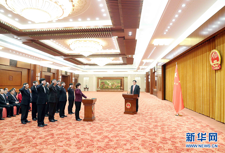 剛剛閉幕的十三屆全國人大常委會第一次會議任命了全國人大常委會副秘書長、預(yù)算工作委員會主任、第四任香港特別行政區(qū)基本法委員會主任和第四任澳門特別行政區(qū)基本法委員會主任。根據(jù)全國人大常委會關(guān)于實(shí)行憲法宣誓制度的決定,上述人員依法進(jìn)行憲法宣誓。