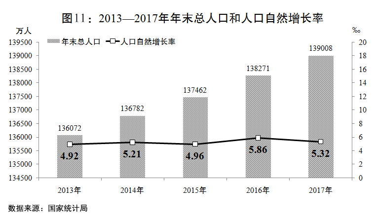 三是基本公共服務(wù)體系進(jìn)一步完善?!笆濉蓖七M(jìn)基本公共服務(wù)均等化規(guī)劃出臺(tái),國(guó)家基本公共服務(wù)清單制度開始建立。九年義務(wù)教育鞏固率93.8%,高中階段教育毛入學(xué)率88.3%,財(cái)政性教育經(jīng)費(fèi)支出占國(guó)內(nèi)生產(chǎn)總值比例繼續(xù)超過4%。全部三級(jí)公立醫(yī)院參加醫(yī)聯(lián)體建設(shè),每千人口醫(yī)療衛(wèi)生機(jī)構(gòu)床位數(shù)達(dá)到5.66張。公共文化服務(wù)保障法正式實(shí)施,以縣為單位加快落實(shí)國(guó)家基本公共文化服務(wù)指導(dǎo)標(biāo)準(zhǔn)和省級(jí)實(shí)施標(biāo)準(zhǔn)。全民健身指南發(fā)布,“十三五”國(guó)家老齡事業(yè)發(fā)展和養(yǎng)老體系建設(shè)規(guī)劃印發(fā)實(shí)施。加強(qiáng)社會(huì)兜底保障,困難殘疾人生活補(bǔ)貼和重度殘疾人護(hù)理補(bǔ)貼受益人數(shù)均超過1000萬,近6000萬低保人員和特殊困難群眾基本生活得到有效保障,農(nóng)村留守兒童關(guān)愛保護(hù)體系全面構(gòu)建,近50萬孤兒和艾滋病毒感染兒童納入政府保障。全面兩孩政策持續(xù)推進(jìn),全年出生人口1723萬人,年末總?cè)丝?3.9億人,人口自然增長(zhǎng)率為5.32‰。