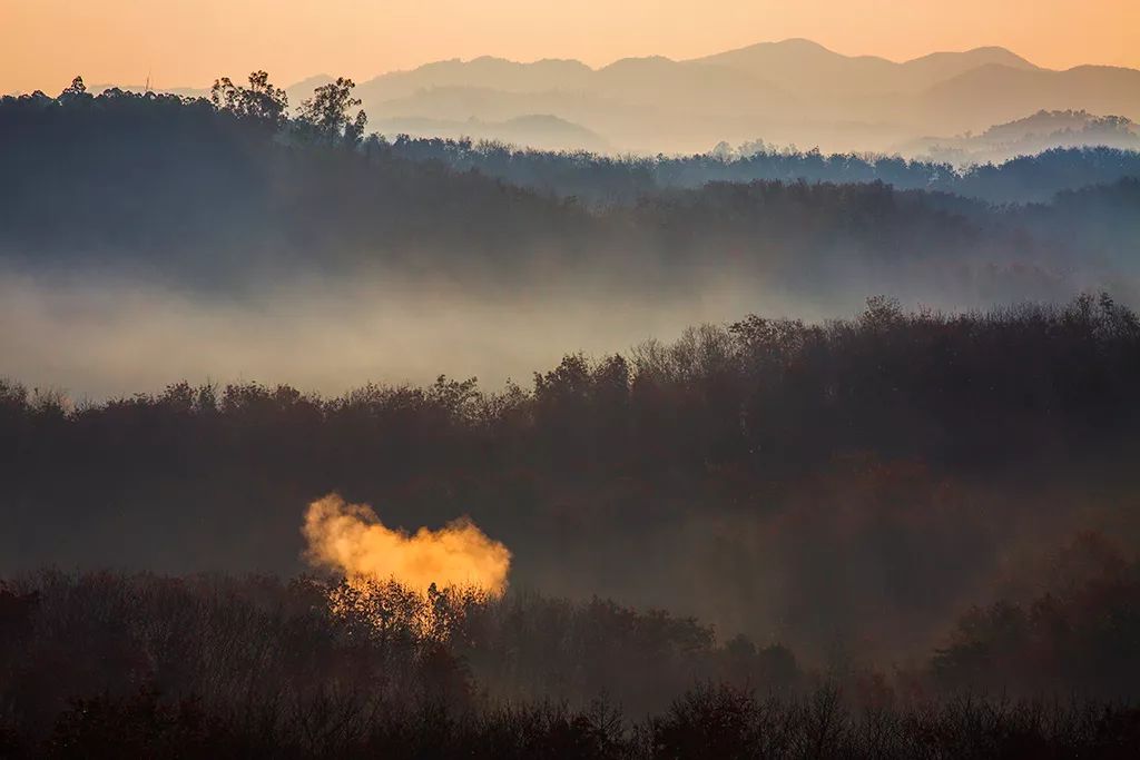 2019-01-26,海南保亭縣。初春的山區(qū)里,一道炊煙從山間攀緣而上,伴著晨光升起。作者:八戒