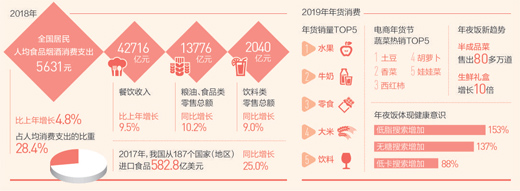 數(shù)據(jù)來源:國家統(tǒng)計局、海關(guān)總署、京東《2019年中國年貨消費報告》、天貓《中國人年夜飯消費報告》