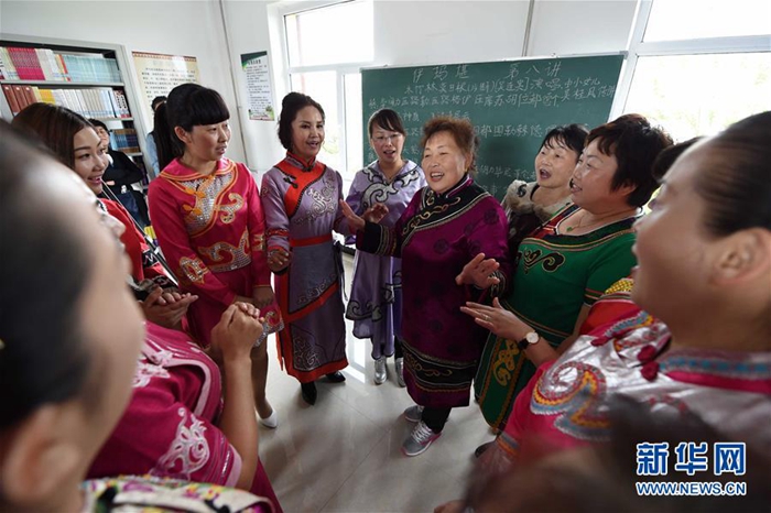 在同江市八岔赫哲族伊瑪堪傳習(xí)所,學(xué)員在學(xué)習(xí)伊瑪堪(2016年5月25日攝)。新華社記者 王建威 攝
