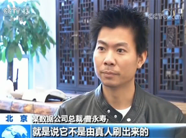 北京某數(shù)據(jù)公司總裁 曹永壽:就是它不是由真人刷出來(lái)的,而是由機(jī)器(利用軟件)手動(dòng)刷出來(lái)的。