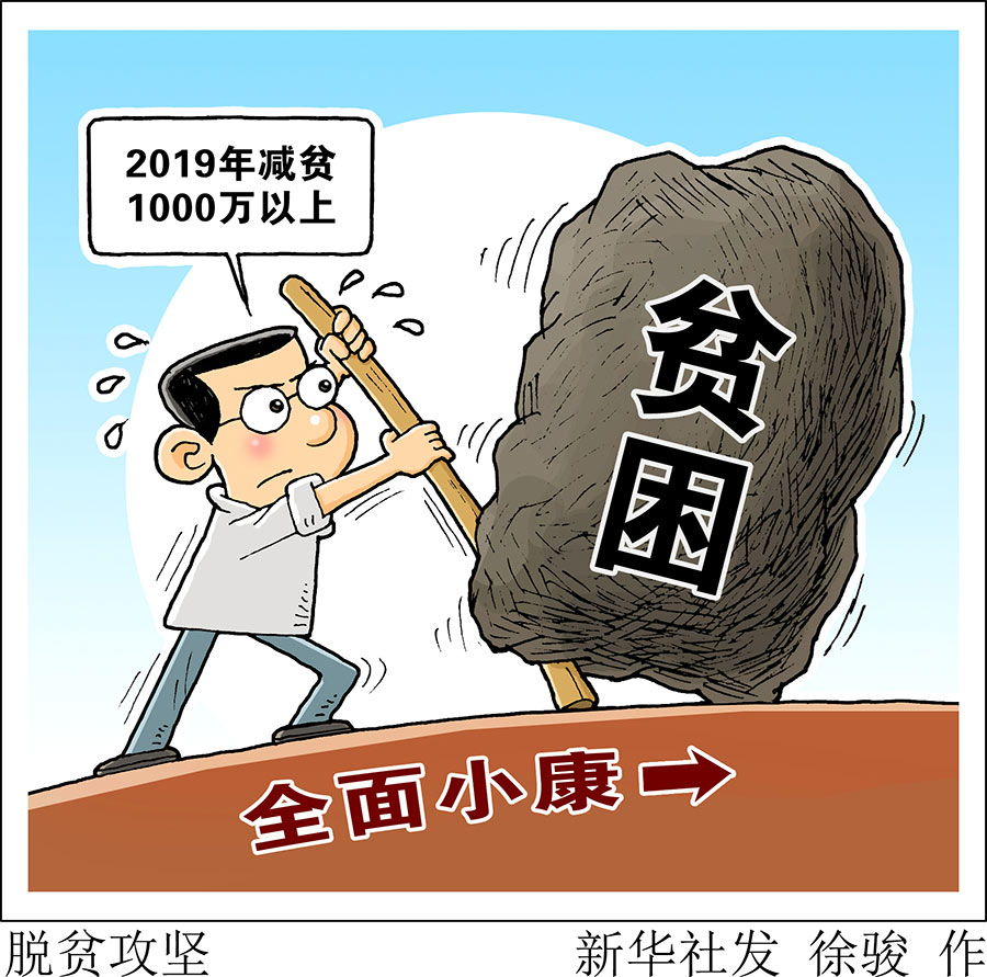 新華社北京3月5日電(記者侯雪靜、張紫赟)5日提交十三屆全國人大二次會議審議的政府工作報告提出,2019年農(nóng)村貧困人口減少1000萬以上。