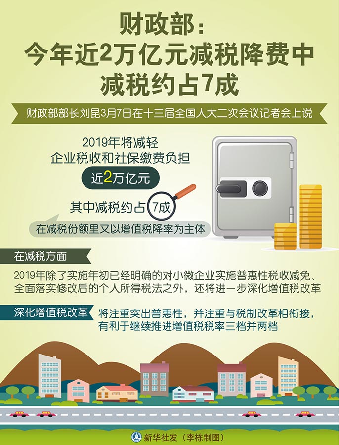 圖表:財政部:今年近2萬億元減稅降費中減稅約占7成 新華社發(fā) 李棟 制圖