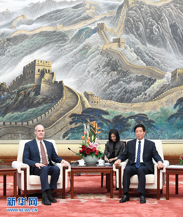 3月22日,全國人大常委會委員長栗戰(zhàn)書在北京人民大會堂會見美國眾議院“美中工作小組”代表團。 新華社記者申宏攝