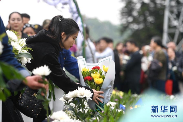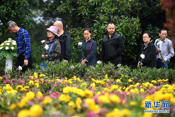 3月29日,在廣西柳州市西山墓園,親屬向逝者獻(xiàn)花。新華社發(fā)(黎寒池 攝)