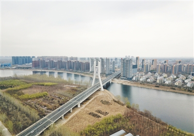燕潮大橋位于燕郊國家高新技術(shù)產(chǎn)業(yè)開發(fā)區(qū)西部,東連燕郊高新區(qū)北外環(huán)路,對接燕順路、燕靈路、迎賓路等城市路網(wǎng);向西跨潮白河與北京市通州區(qū)徐尹路對接,經(jīng)北京城市干路與東六環(huán)、東五環(huán)、東四環(huán)相通,橋梁全長1118.6米。工程總投資3.17億元,由三河市投資建設(shè),2015年5月1日正式開工建設(shè),2018年5月16日竣工。(記者 周依)