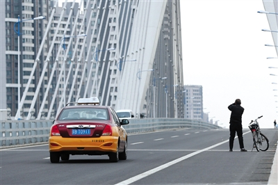 昨日,燕潮大橋上的車輛和行人。新京報記者 侯少卿 攝