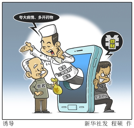 “新華視點(diǎn)”記者追蹤調(diào)查發(fā)現(xiàn),該犯罪團(tuán)伙把普通民營(yíng)醫(yī)院包裝成擁有“名醫(yī)”的“三甲醫(yī)院”,通過(guò)搜索競(jìng)價(jià)排名尋找病患對(duì)象,再雇用沒(méi)有行醫(yī)資質(zhì)的“醫(yī)生”誘導(dǎo)其接受高收費(fèi)治療,甚至開(kāi)出許多對(duì)病情毫無(wú)作用的藥物,從而達(dá)到斂財(cái)?shù)哪康摹?/p>